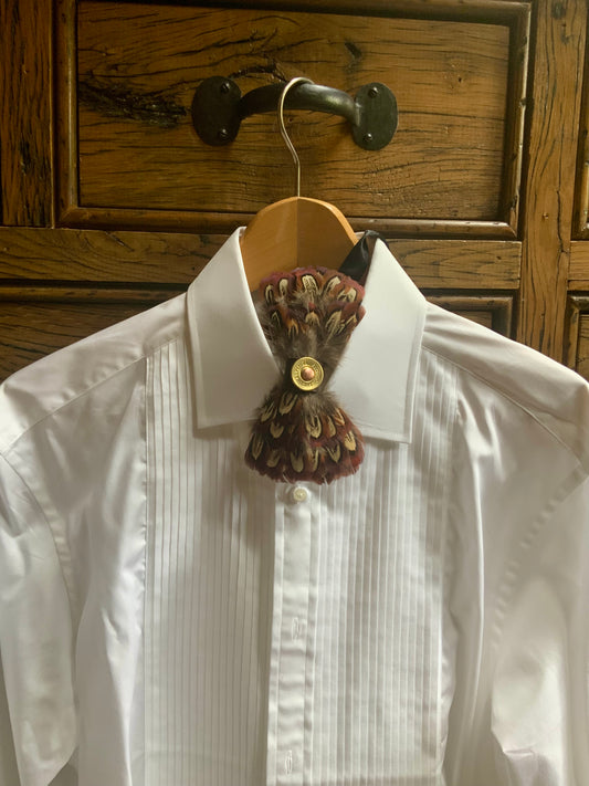 Cock Pheasant Feather Bow Tie with Spent Cartridge