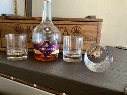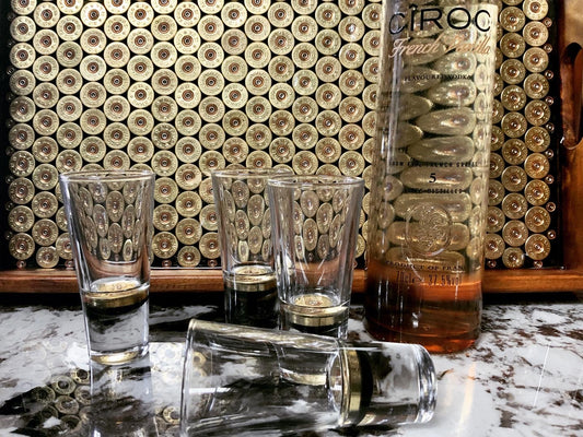 Which ever unique glass you decide on whether it be “Shooters Shot Glass” or “The Old Fashioned Rocks Glass” each one has a 12 bore cartridge encased inside the base as well as copper pellets if you decide on The Old Fashioned Rocks Glass which is filled with masculinity !!
