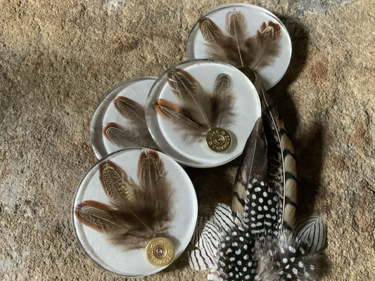 These gorgeous hand made epoxy resin bespoke coasters and placemats filled with a variety of items are inspired by those who love the country element and country sports .