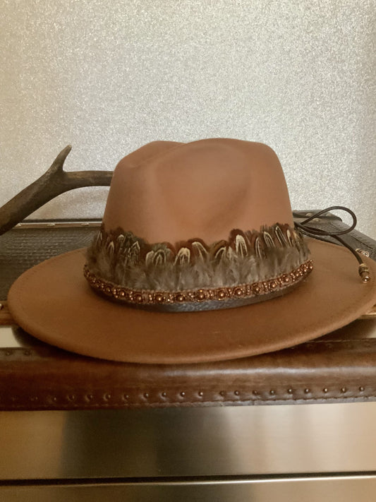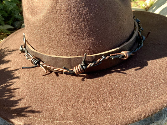 We have used beautiful thick Italian leather on the base of all of our hat bands and then added a different variation to each hat band with either feathers, rhinestones, spent shells, leather barbed wire and more.